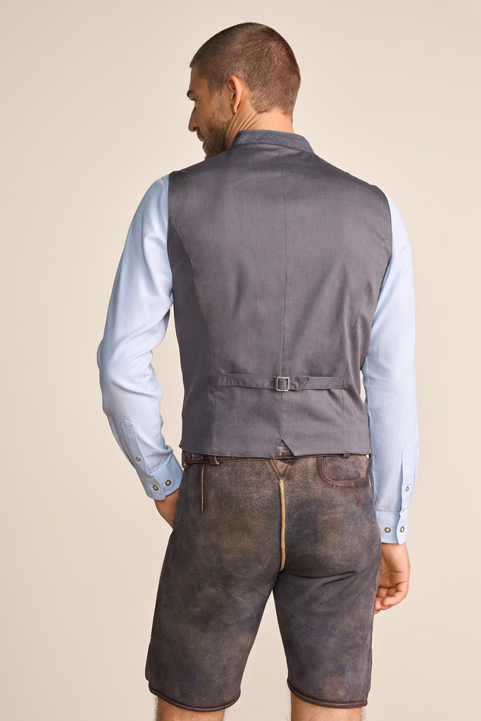 Die Trachtenweste Jörn von Krüger Buam vereint klassischen und modernen Stil. Durch den Rundhalsausschnitt, die edlen Knöpfe und die feinen Stickereien am Kragen wirkt sie raffiniert und stilvoll. Perfekt für festliche Anlässe oder als elegantes Piece im Alltag. Passt wunderbar zu unseren modernen Hemden im Shop.