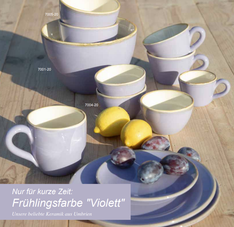 Die eigene Keramikserie von Grün&Form wirde in einem Familienbetrieb im italienischen Umbrien gefertigt. Dieser bunte Klassiker macht jede Tafel zu etwas Besonderem und erfreut sich großer Beliebtheit. Erweitert wird das Sortiment durch schöne Olivenholzprodukte, wie Salatbesteck oder Kochlöffel.