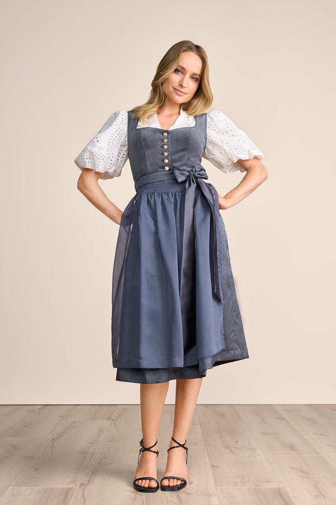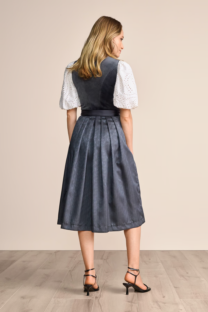 Unser wunderschönes Samtdirndl Patrice ist ein wahrer Hingucker! Mit seinem taillierten Schnitt betont es deine Silhouette, während der ornamentale Rock und die unifarbene Schürze ein harmonisches Gesamtbild ergeben. Die praktischen Eingrifftaschen und der stilvolle Knopfverschluss machen dieses Dirndl nicht nur schön, sondern auch praktisch. Ein moderner Klassiker, ohne Miederschnürung, der nie aus der Mode kommt! Wähle dazu passend eine reizvollen Dirndlbluse aus unserem Shop!