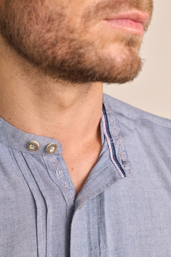 Dieses elegante Hemd ist das ultimative Must-Have für jeden Trachtenliebhaber! Der moderne Look wird durch den stylischen Stehkragen und die praktische Knopfleiste unterstrichen, während die dekorativen Stickereien an den Handgelenken einen besonderen Charme verleihen. Tragekomfort und Stil kommen mit diesem Hemd perfekt zusammen und lässt sich wunderbar zu einer schicken Lederhose tragen.
