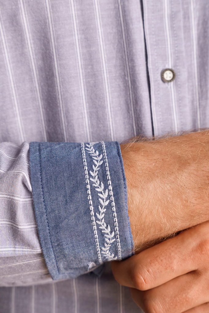 Das Hemd Samir verbindet ein stilvolles Streifenmuster mit klassischem Charme und Komfort. Der praktische Stehkragen und die durchgehende Knopfleiste sorgen für eine elegante Optik. Feine Stickereien setzen dezente Akzente und verleihen dem Hemd eine besondere Note. Perfekt für einen raffinierten Look mit Lederhose bei verschiedenen Anlässen oder um deinem Alltag einen Hauch von Eleganz zu verleihen.