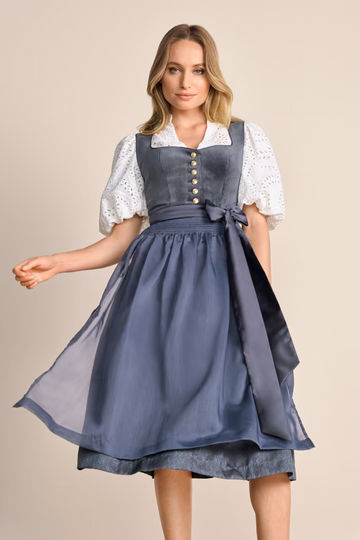 Unser wunderschönes Samtdirndl Patrice ist ein wahrer Hingucker! Mit seinem taillierten Schnitt betont es deine Silhouette, während der ornamentale Rock und die unifarbene Schürze ein harmonisches Gesamtbild ergeben. Die praktischen Eingrifftaschen und der stilvolle Knopfverschluss machen dieses Dirndl nicht nur schön, sondern auch praktisch. Ein moderner Klassiker, ohne Miederschnürung, der nie aus der Mode kommt! Wähle dazu passend eine reizvollen Dirndlbluse aus unserem Shop!