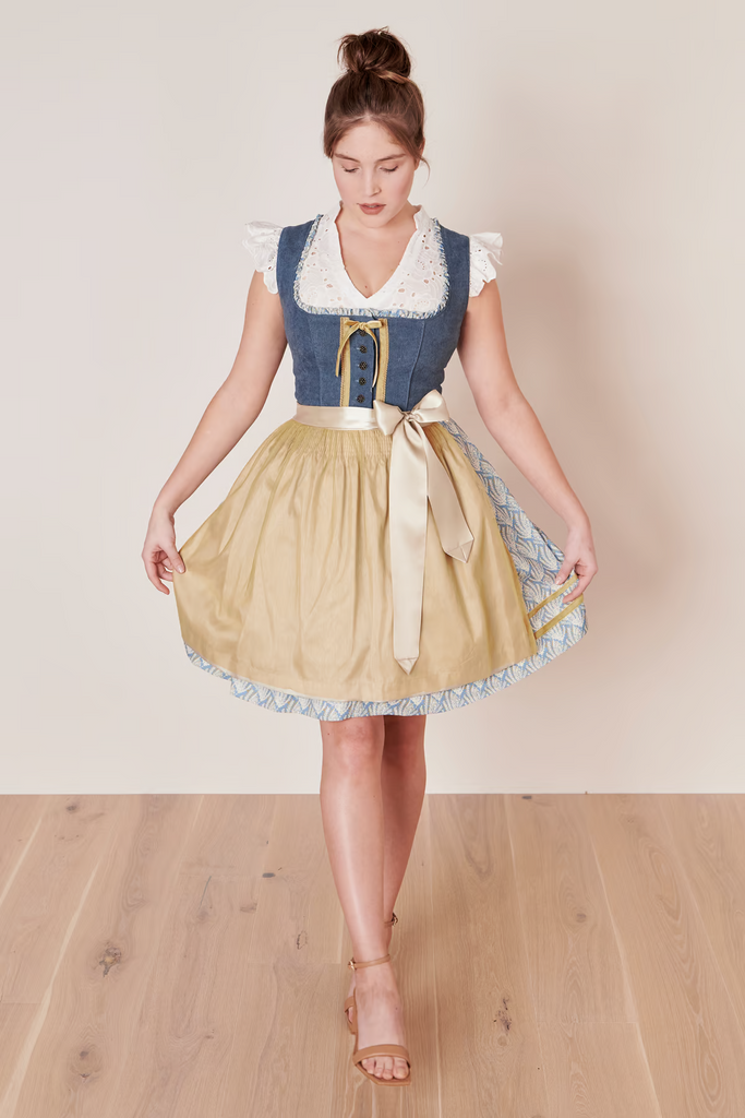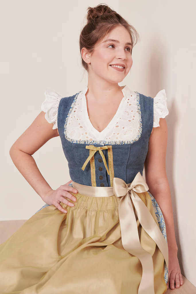 Die schöne Schürze verleiht dem Dirndl Fritzi einen Hauch von Tradition, während das Fehlen einer Miederschnürung für einen modernen Look sorgt. So kannst du dich auf Volksfesten, festlichen Veranstaltungen oder Ausflügen stilvoll und selbstbewusst zeigen.
