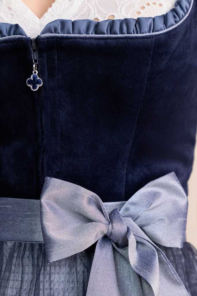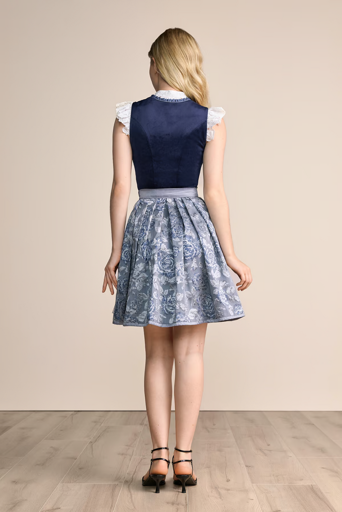 Unser wunderschönes Samtdirndl Joelina wird dich auf jedem Volksfest zum Blickfang machen! Das unifarbene Mieder aus edlem Samt und der gerade Ausschnitt zaubern ein bezauberndes Dekolleté. Der Rock besticht mit einem floralen Muster und schließt mit einem Reißverschluss auf der Vorderseite. Die schlichte Schürze rundet den Look perfekt ab. Mit einer Rocklänge von 50 cm endet es kurz über dem Knie. Passend zu unseren Dirndlblusen.