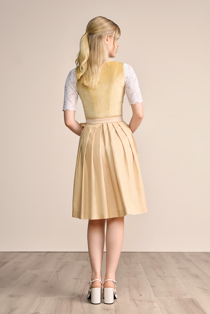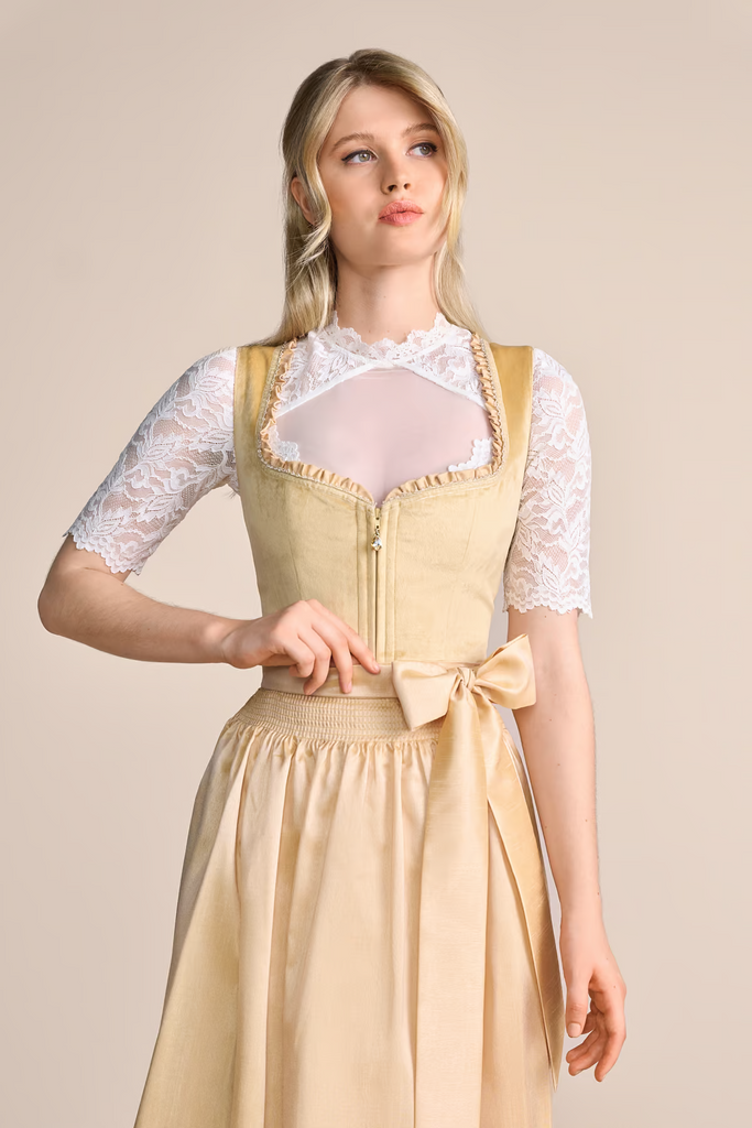Entdecke unser bezauberndes Dirndl ANNINA aus der Krüger Madl Kollektion. Der gelbe Farbton verleiht dem Dirndl einen reizenden und frischen Look. Der elegante Herzausschnitt betont deine Weiblichkeit auf exquisite Weise. Perfekt für jeden Anlass! Passend dazu erhältst du auch eine große Auswahl Dirndlblusen in unserem Shop.
