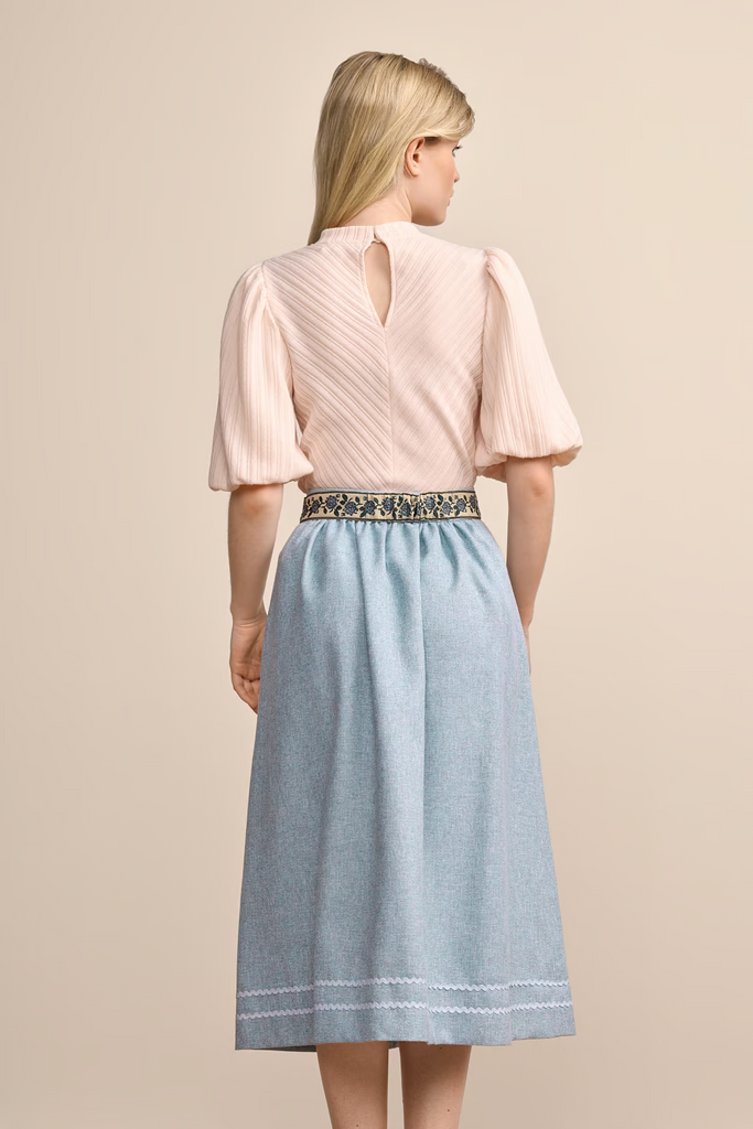 Unser eleganter Trachtenrock Rosemarie vereint Tradition und Moderne. Der unifarbene Stoff und die hochwertige Verarbeitung sorgen für zeitlose Eleganz. Dezente Borten am Saum und der florale Gürtel mit Schnalle verleihen dem Rock eine feminine Note. Perfekt für festliche Anlässe und gemütliche Tage im Biergarten. Schön auch mit einer passenden Bluse!