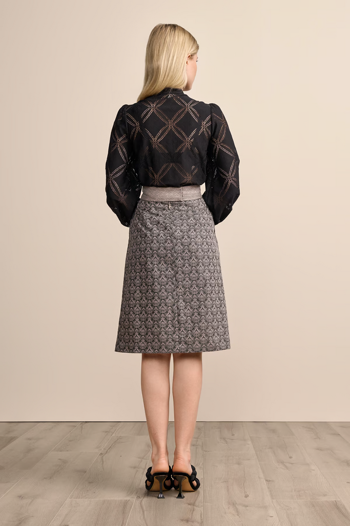 Dieser bezaubernde Trachtenrock Fanja aus der Krüger Collection kombiniert kunstvoll traditionelle Elemente mit modernem Charme. Das edle Ornamentmuster verleiht ihm eine stilvolle Note und macht ihn zu einem einzigartigen Kleidungsstück. Super kombinierbar mit einer Bluse oder Shirt aus unserem Sortiment.