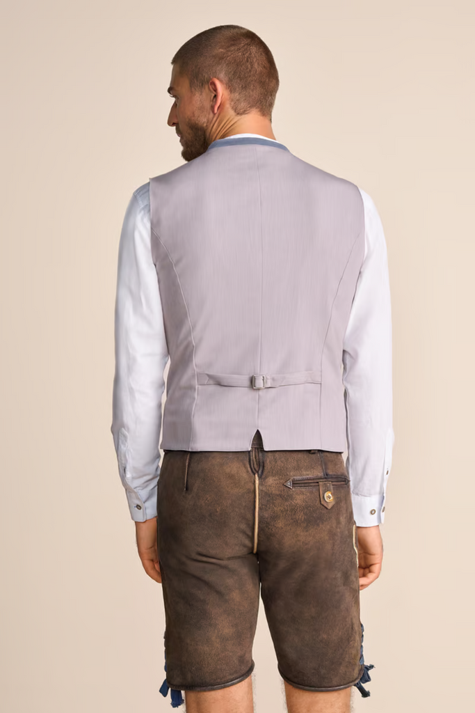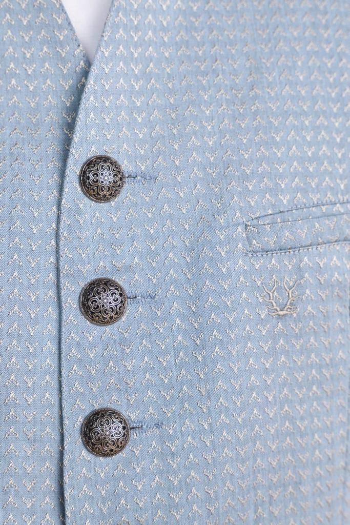 Trachtenweste Junis besticht durch ihr zart schimmerndes Muster und den modernen V-Ausschnitt, der dem Outfit eine elegante Note verleiht. Die edle Knopfleiste und die praktischen Brusttaschen ergänzen das stilvolle Design. Der farblich abgesetzte Kragen setzt einen zusätzlichen Akzent. Mit ihrem tollen modernen Look und optimalem Tragekomfort ist die Weste Junis die perfekte Wahl für besondere Anlässe und sorgt für einen stilvollen Auftritt bei jedem Event, vor allem auch mit dem passenden Hemd.