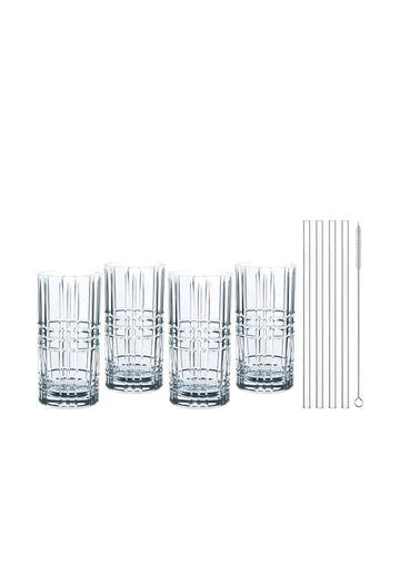 Longdrinkgläser - TASTES GOOD 4tlg. - inkl. Trinkhalme Reinigungsbürste - Nachtmann